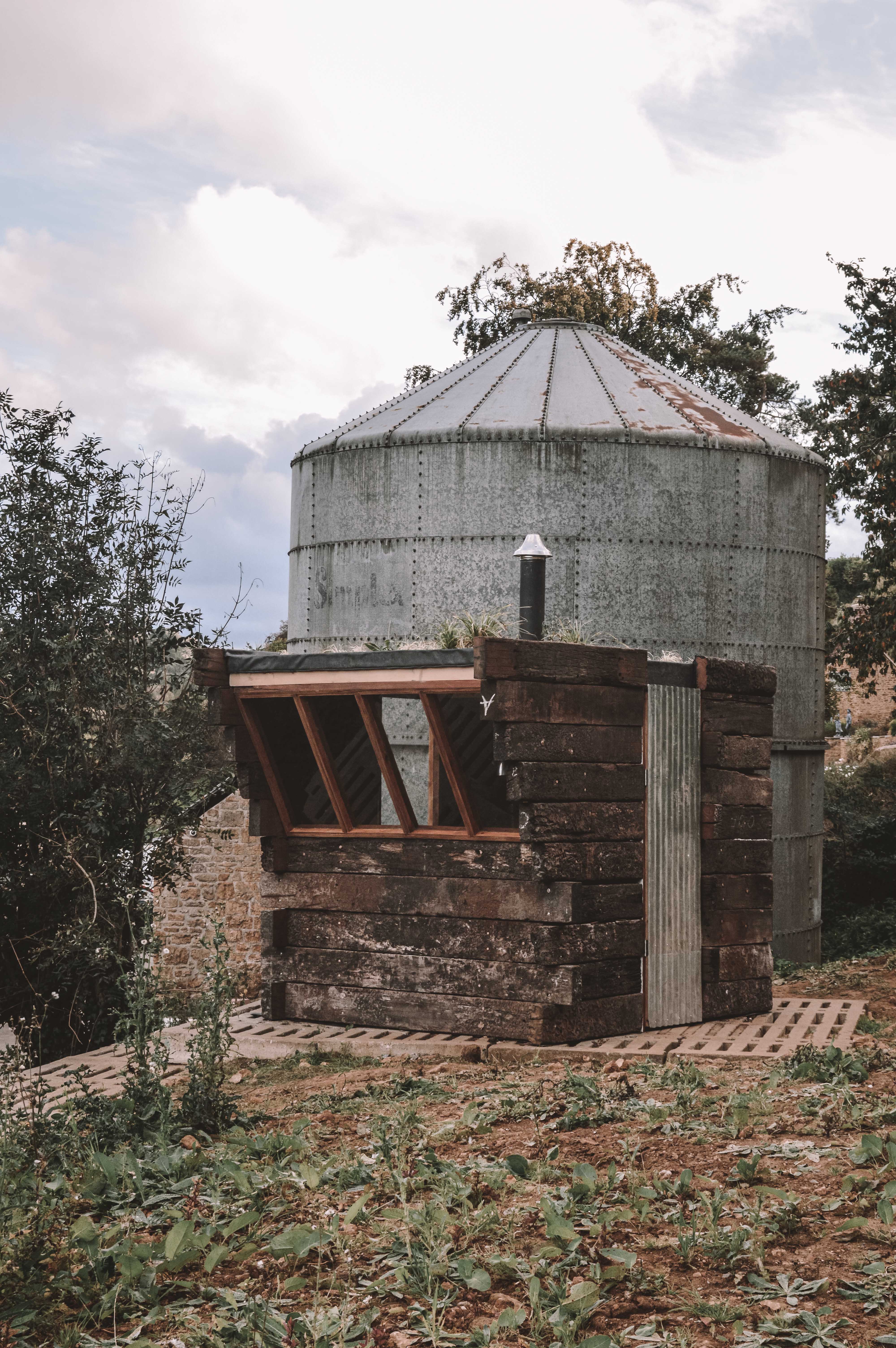 Just as the construction of sheds is often the purest form of vernacular architecture, the shed is a combination of available materials and a balance of rational and improvisational thinking. The principal material is reclaimed railway sleepers, with doors formed from corrugated sheets found on site, and the plinth made of surplus precast concrete cattle grids from neighbouring buildings. Structure is the essence of the shed, with the butt and pass corner details expressing the physical effort of assembly.