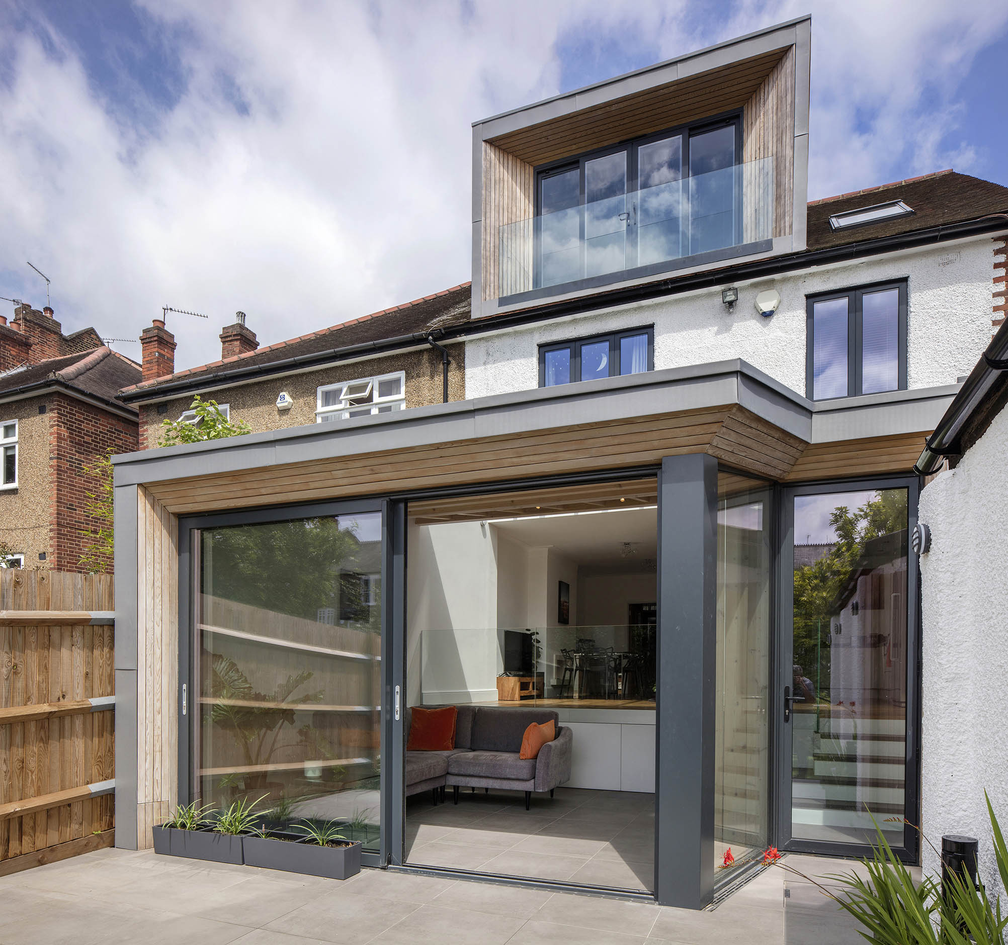 Conceived as a whole, the two projects are united formally by zinc and timber cladding used externally on both extension and loft. The cedar has been treated to imitate the ageing process, removing the need for regular and expensive maintenance. The result is an extension of the home that is a product and continuation of the surrounding environment.
