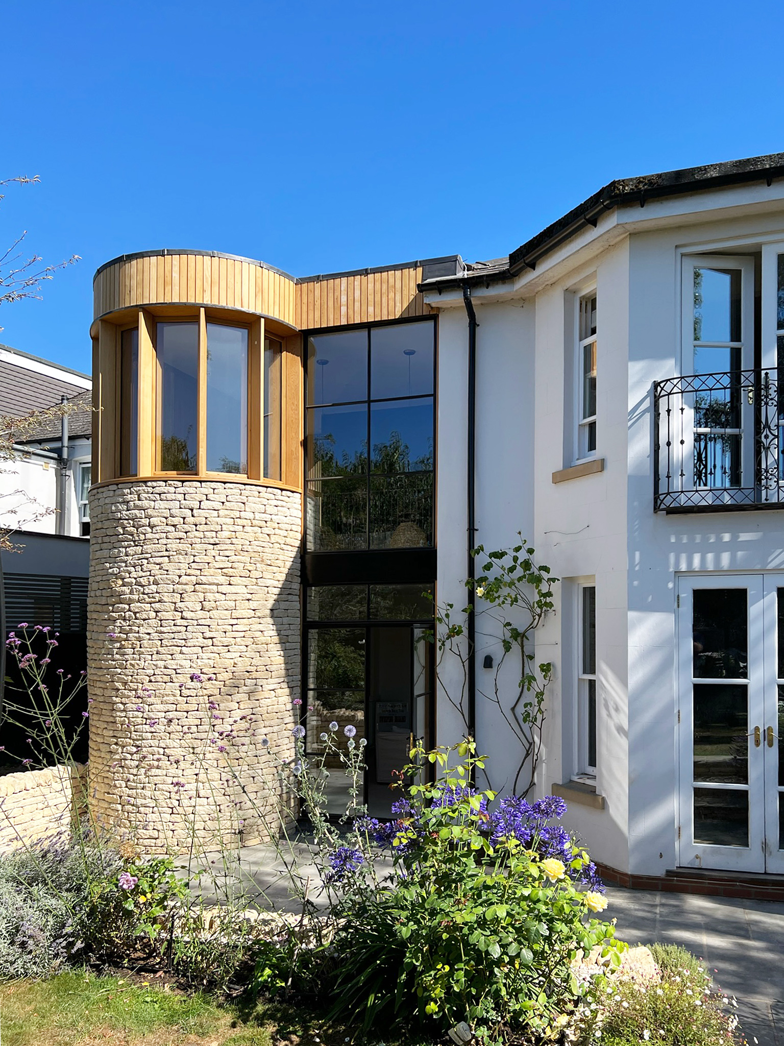 The Cupola, at Curzola is a playful two storey extension and remodelling scheme nestled alongside an existing family home in Charlton Kings, Cheltenham.