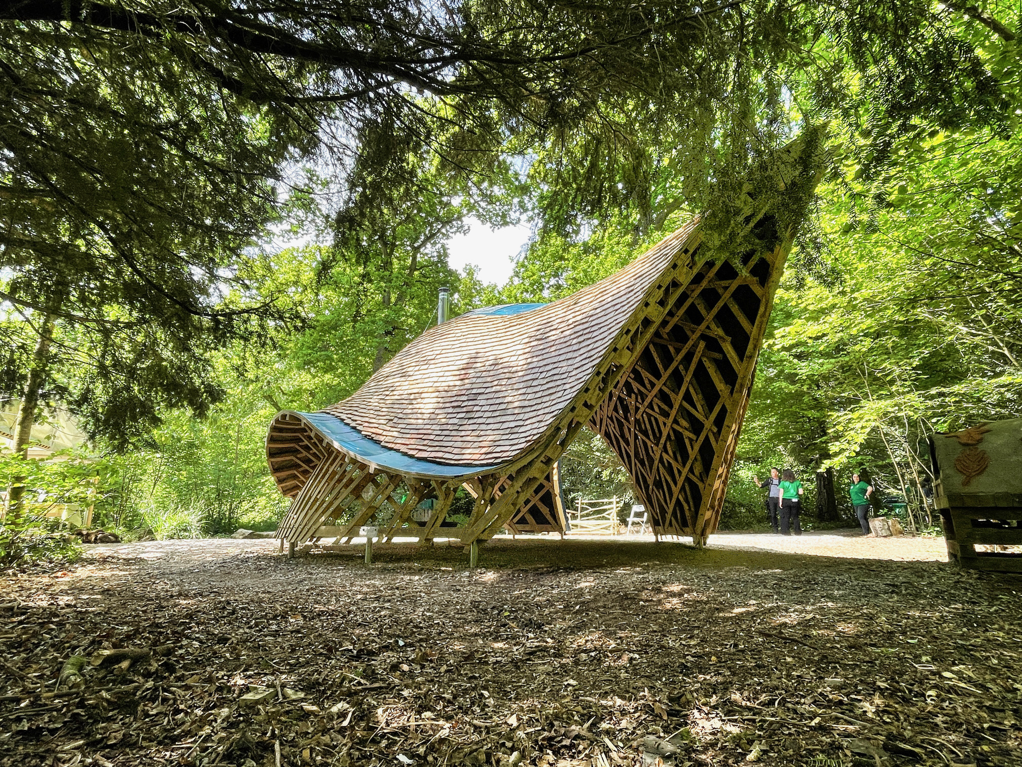 While technically complex, the project was conceived, designed & constructed working alongside community participants with a range of abilities – demonstrating the mindful benefits of nature and co-creation. The shelter is made from trees that were due to be extracted as part of Westonbirt's routine woodland management cycle, as well as recycled aluminium signage from across the site. The design process involved high levels of engagement from the outset, using sketches, small models, digital scanning, large scale mock-ups and onsite fabrication to involve the community groups at every stage of the project. Considering the varying skills sets of the participants, the shelter provided opportunities for individuals to join in on a range of traditional green timber carpentry techniques, including steam bending, laminating and shingle making to build the unusual structure. The distinctive shape of the shelter has been deliberately created this way to allow inclusive design and offer the groups who will use the shelter a space that is non-prescriptive. The community that uses the shelter feel a sense of ownership, while those participants involved in the build process have experienced the pride in making this project, with a positive outlook on what they can achieve next. One of the carers said: “The project has really had a positive impact on our students. The real life application of the tasks that they have undertaken has been fundamental in this; the work they have done has been valuable and useful, never tokenistic. Every single member of our group is finishing their time in the project believing in themselves more, and with a real sense of pride and ownership".
