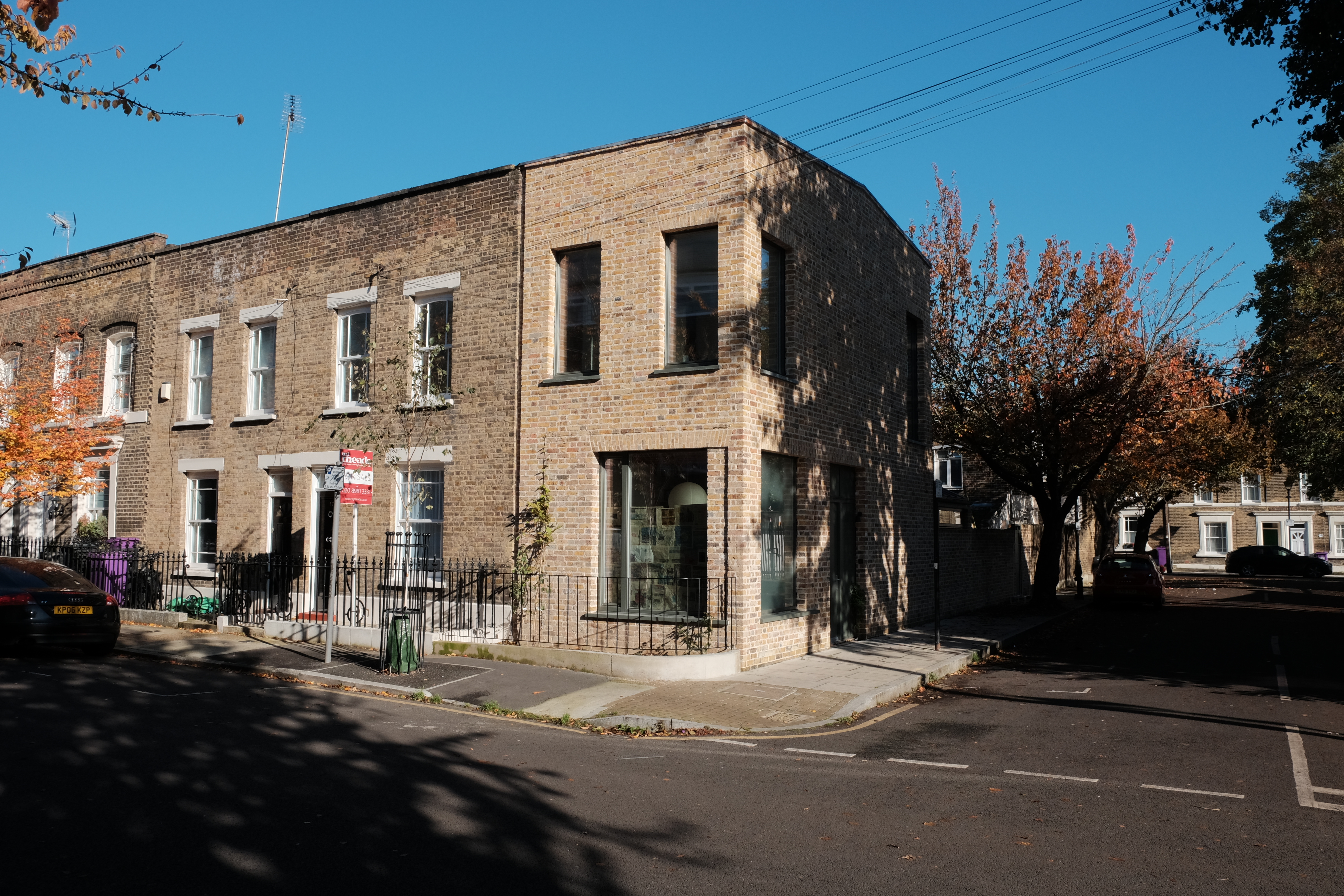The new house stands on a corner of a Victorian terrace in east London, once a bomb site, now part of the Carlton Square conservation area.