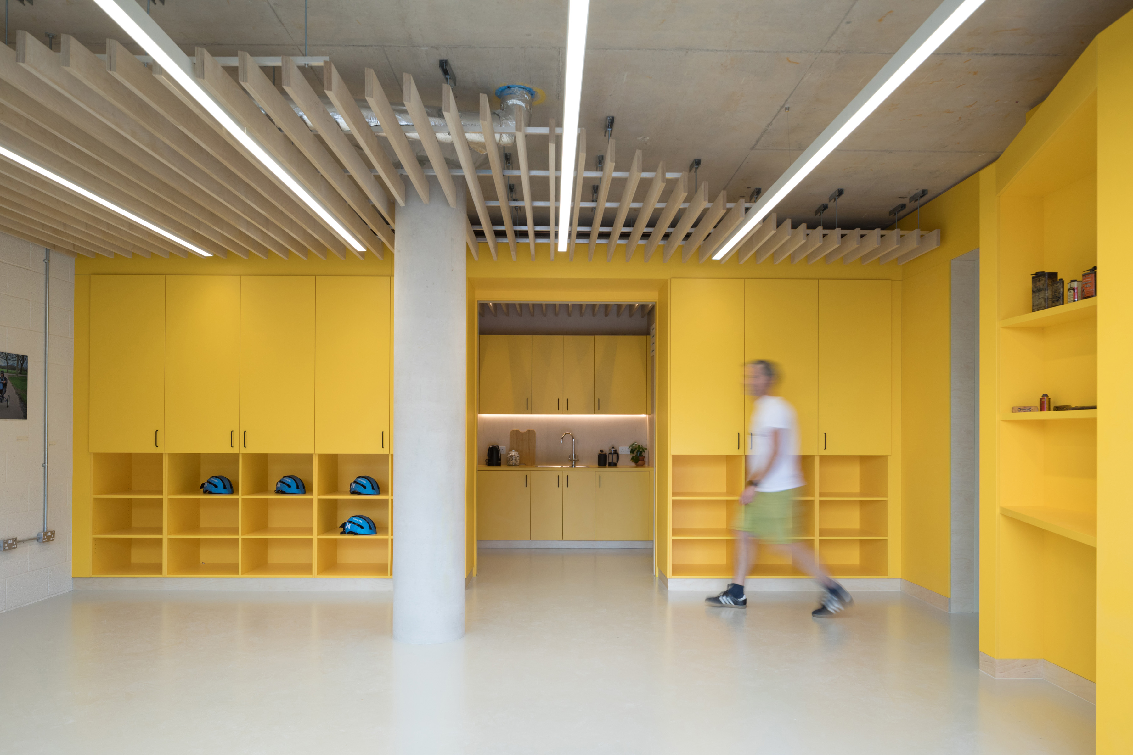 With bespoke joinery expertly crafted by Constructive and Co, services design by Skelly and Couch, and construction by Sara-Int, FKA were lead designer and CA to deliver an eye-catching fit-out that provides dedicated office and workshop space for an essential community charity. The new Bikeworks hub is located opposite the Lee Valley Velo Park (Velodrome), the spiritual home of British cycling. Innovative features bring delight and function to the project, such as ‘The Penknife’ - a flexible storage wall containing shelving, desk space and a unique curved door and ‘The Gantry’ - a movable soffit containing power, lighting and storage. The scheme is ostensibly a fit-out of a retail unit at the ground floor of the Chobham Manor Estate (built by Taylor Wimpey, designed by PRP). The brief was to design and install new cladding, internal partitions, linings and services and bespoke fitted joinery for Bikeworks. Foster Kirk Architects were selected as one of five Design Partners in London’s Open House Festival 2023. “The festival’s Design Partner award is an accolade that represents both the architectural merit of a project, and the practices that champion genuine public engagement and the social value of architecture.” Zoë Cave, chief curator of Open House Festival