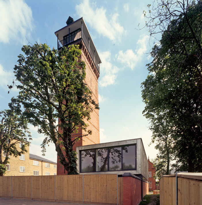 The architect re-engineered this building with a room-stacking design that relates to its industrial past. A hydraulic lift is fitted alongside the tower stair which leads to a tower-top observatory level.
