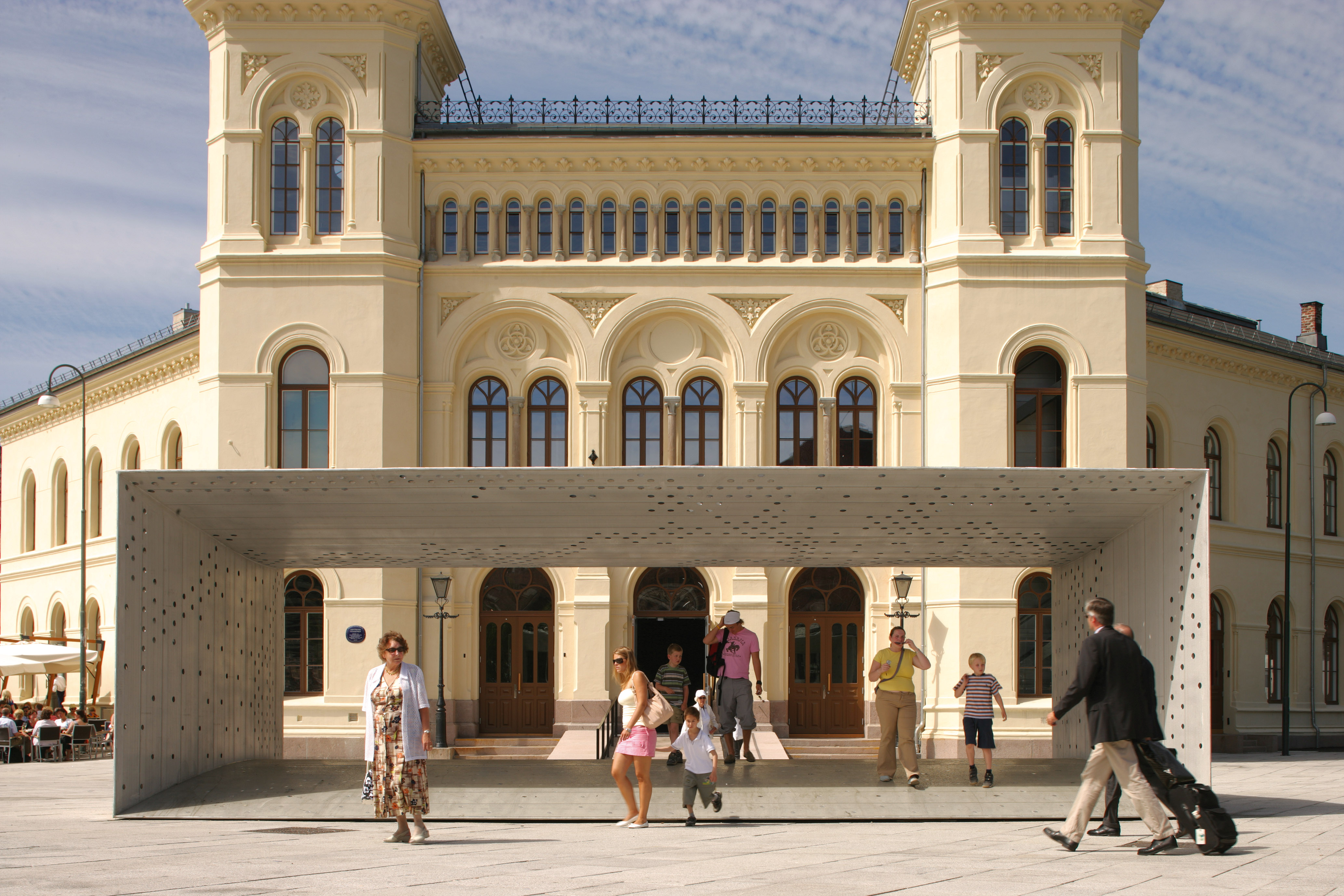 Flexible spaces built within the 1872 Vestbanen train terminal, used to commemorate the Nobel Peace Prize, including an exterior gateway, reception rooms, gift shop, and exhibition spaces