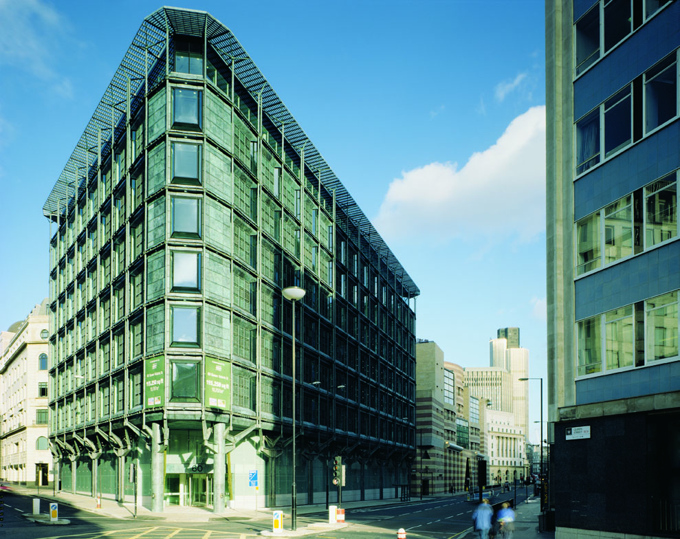 In placing the entrance at the corner, Foggo Associates has echoed the adjacent No 1 Poultry by Stirling