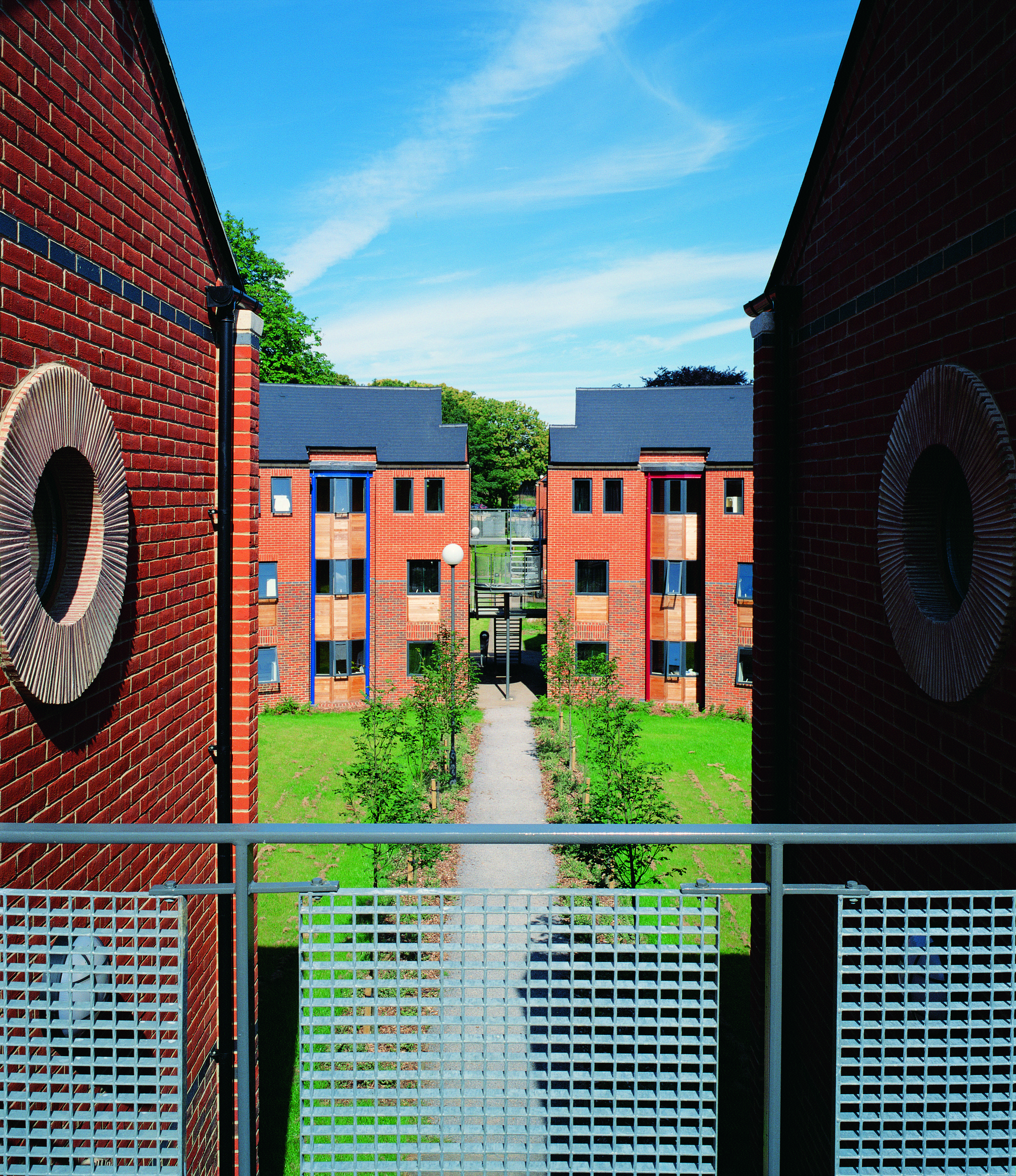 The brief was to provide 405 9m2 student bedrooms on a budget of £14,500 per room. The rooms were planned in clusters of five – an economic as well as social optimum – with a common living-room and kitchen for each group.