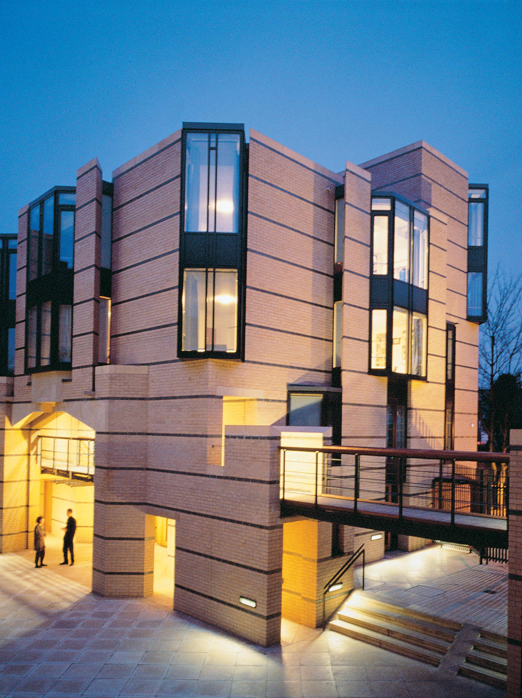 The design consists of a series of linked pavilions which reflect the suburban residential character of the area, rather than the quadrangular forms of medieval Oxford.